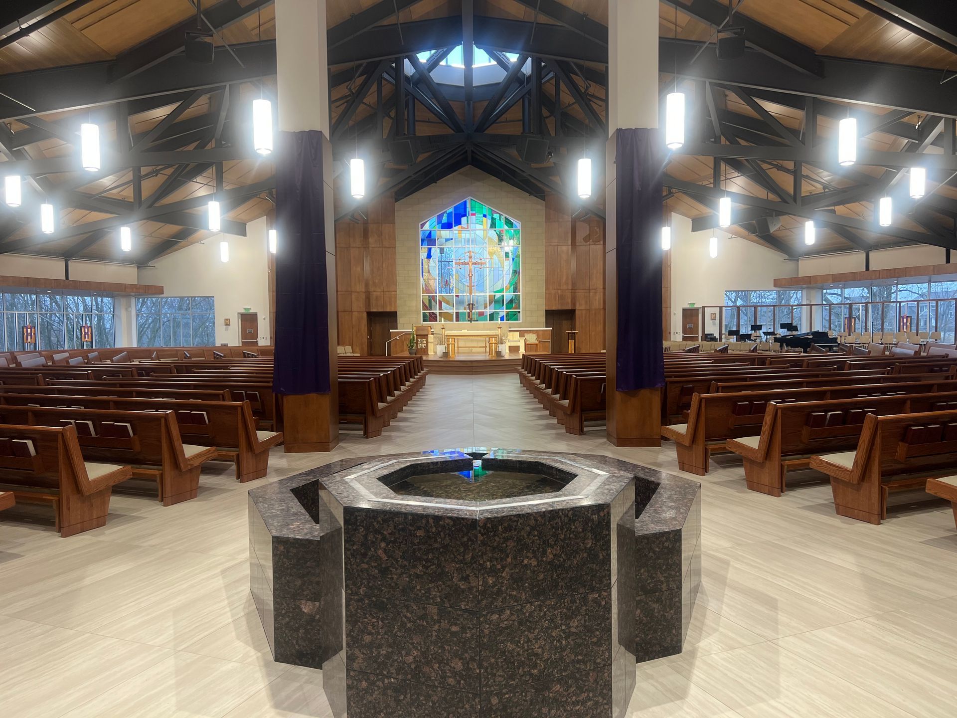 The commission meets on the first Thursday of each month at 7:00 PM to reflect on past liturgies and help plan upcoming seasons and celebrations.